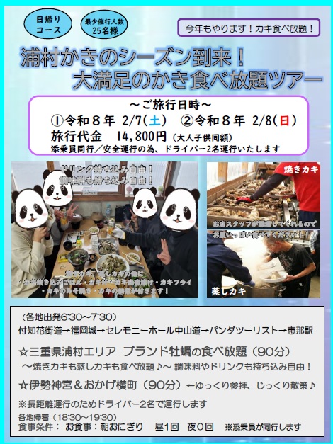 パンダツアー【2026年(令和8年)1月~4月】募集開始のお知らせ